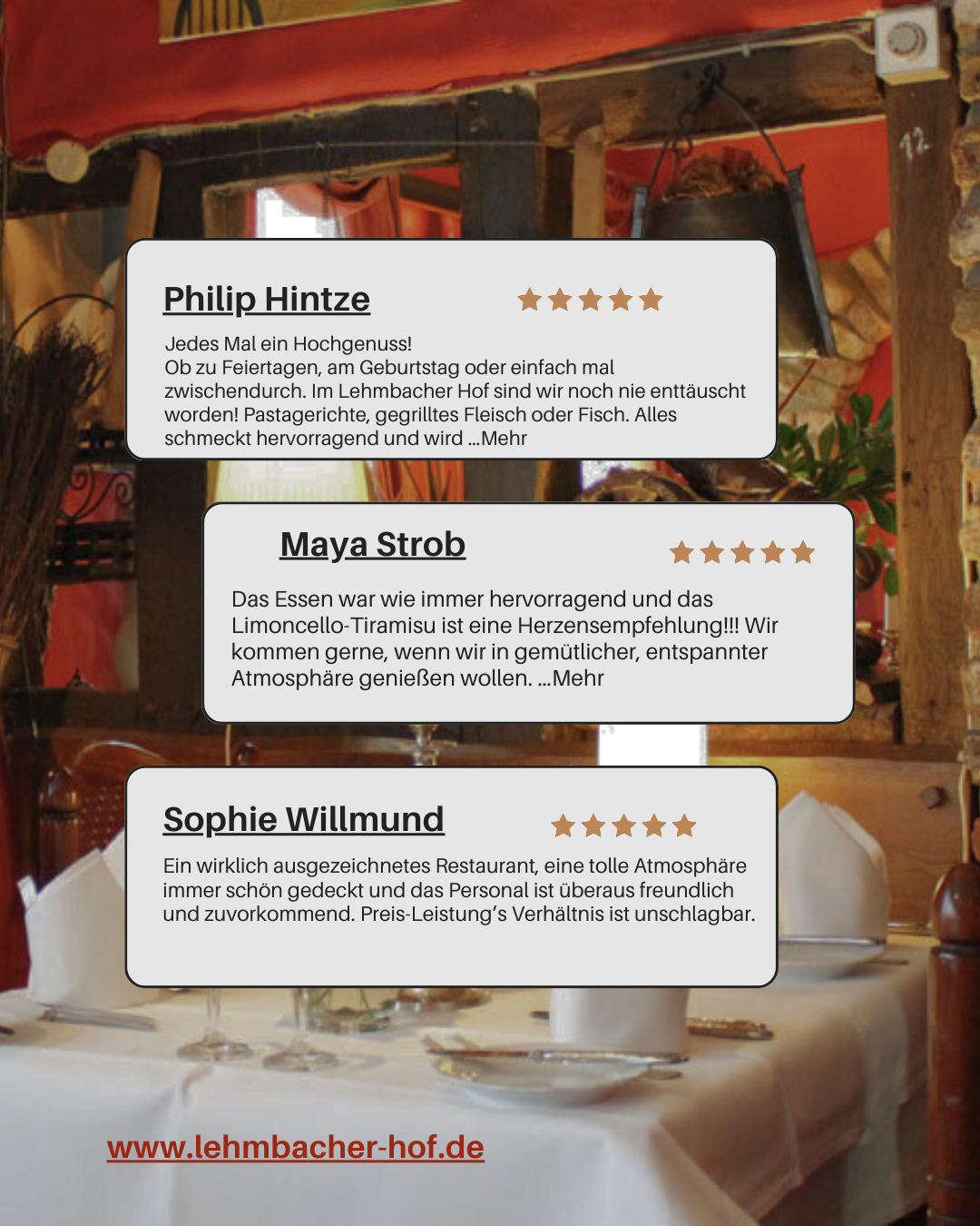 Seit über 15 Jahre erleben und genießen unsere Gäste eine exquisite Auswahl an Weinen und Speisen – von appetitanregenden Vorspeisen über schmackhafte Suppen, Pasta-, Risotto-, Fleisch- und Fischgerichte bis hin zu köstlichen Desserts.